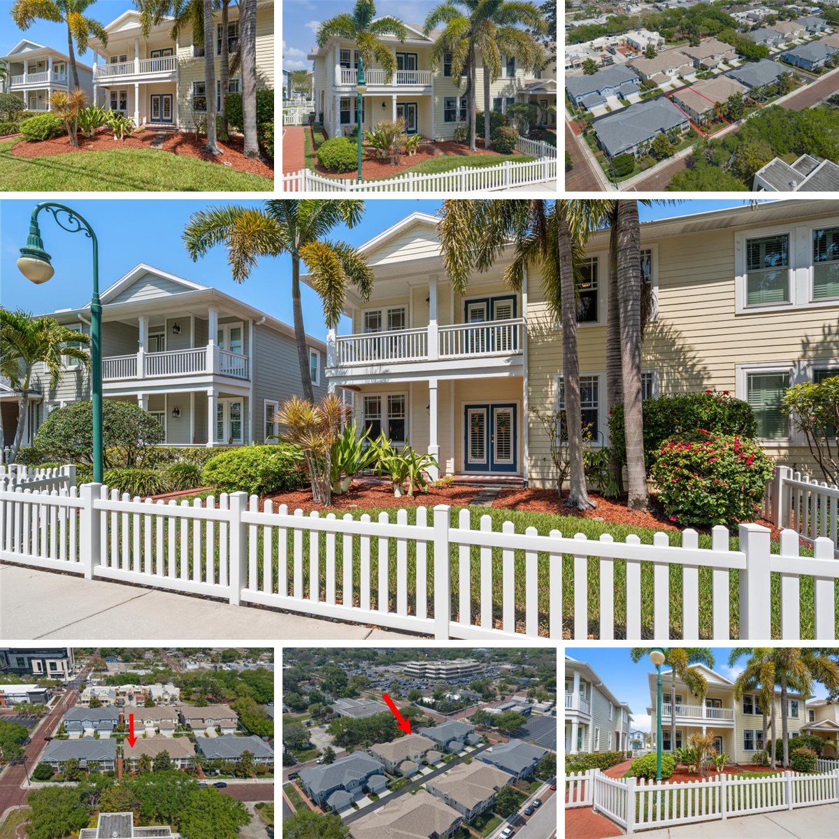 Luxury Townhome in Largo Historical District! Welcome to West Bay Village, an upscale, pet friendly, executive townhome community in the heart of historical downtown Largo, featuring charming white picket fences, vintage streetlights, brick streets, and impeccably maintained landscaping. Warmth and charm radiate from this lovely 4 bed /3 bath townhome with beautiful custom-made cornices and interior hurricane shutters. Enter through the gate of the white picket fenced yard and follow the brick walkway through the beautifully landscaped, tree-shaded yard. Step inside to the welcoming foyer, which opens to a spacious living room featuring 9’ ceilings, elegant crown molding, and an abundance of windows that fill the space with natural light. Lovely French doors lead to the spacious front porch, while beautiful custom-made cornices and interior hurricane shutters add both style and function.
