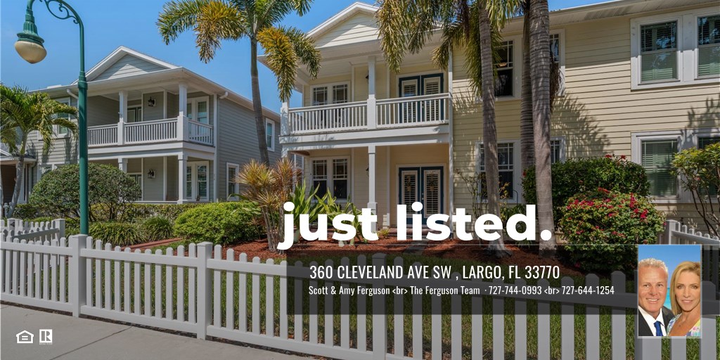Luxury Townhome in Largo Historical District! Welcome to West Bay Village, an upscale, pet friendly, executive townhome community in the heart of historical downtown Largo, featuring charming white picket fences, vintage streetlights, brick streets, and impeccably maintained landscaping. Warmth and charm radiate from this lovely 4 bed /3 bath townhome with beautiful custom-made cornices and interior hurricane shutters. Enter through the gate of the white picket fenced yard and follow the brick walkway through the beautifully landscaped, tree-shaded yard. Step inside to the welcoming foyer, which opens to a spacious living room featuring 9’ ceilings, elegant crown molding, and an abundance of windows that fill the space with natural light. Lovely French doors lead to the spacious front porch, while beautiful custom-made cornices and interior hurricane shutters add both style and function.